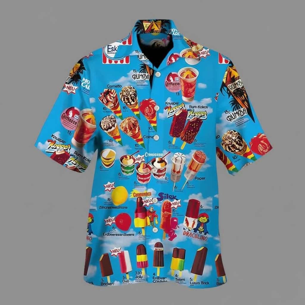 Add a touch of fun to your wardrobe with this unique ice cream polo shirt. Featuring a playful ice cream design, this shirt effortlessly blends casual comfort with a stylish flair. It's perfect for those who want to express their personality while maintaining a polished appearance.